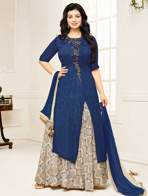blue flared suits unstitched suit set - 14971116 - Very Small Image - 1