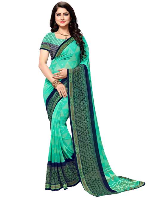 turquoise printed saree with blouse