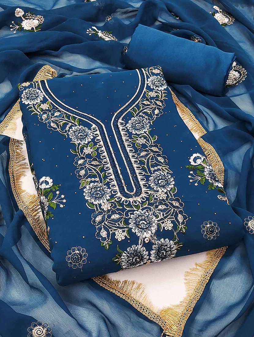- Look ultra gorgeous in unstitched suits from Peachmode and grab these beautiful suits in blue colour.