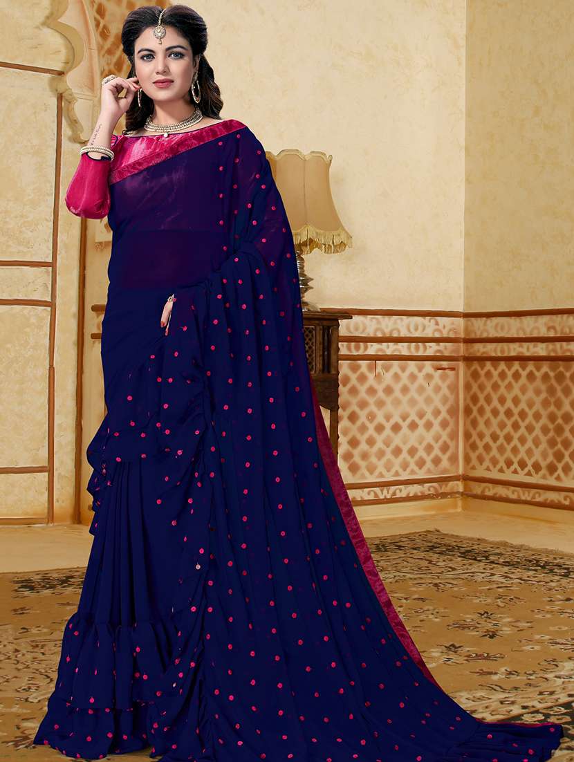 ruffle embroidered saree with blouse