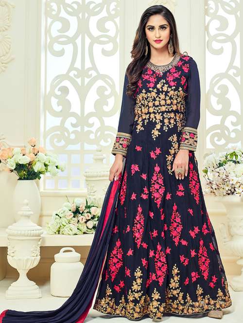 embroidered semi-stitched suit - 16880681 - Very Small Image - 1