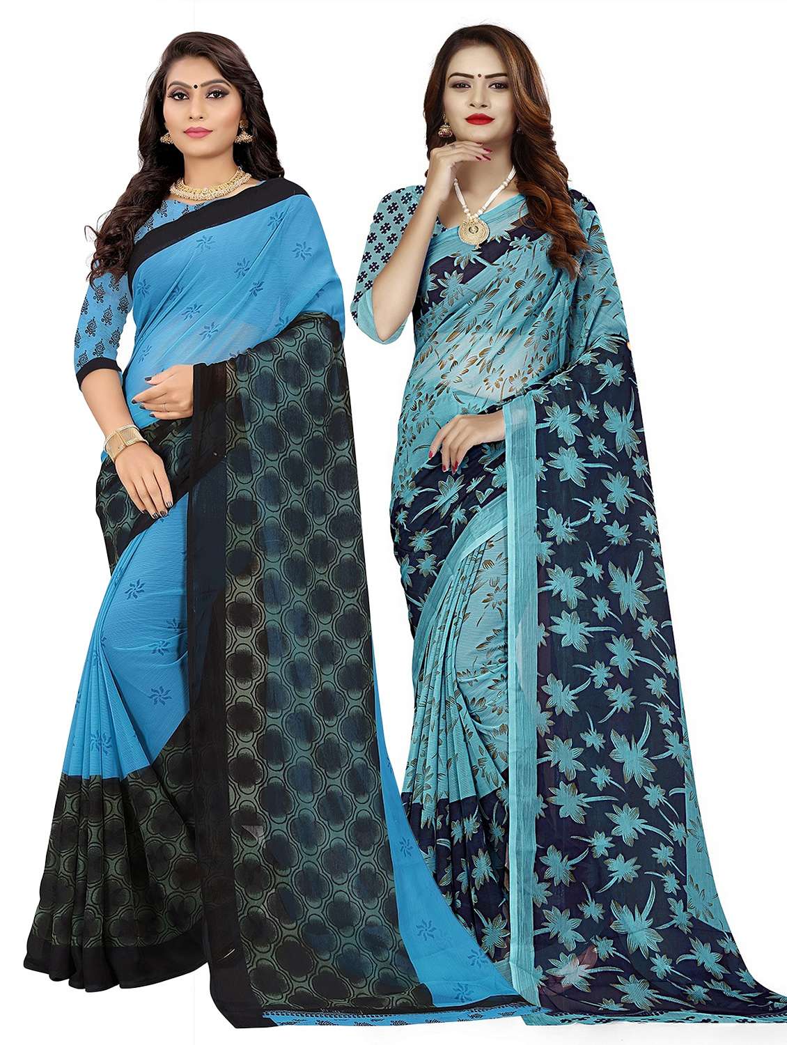 pack of 2 printed saree with blouse