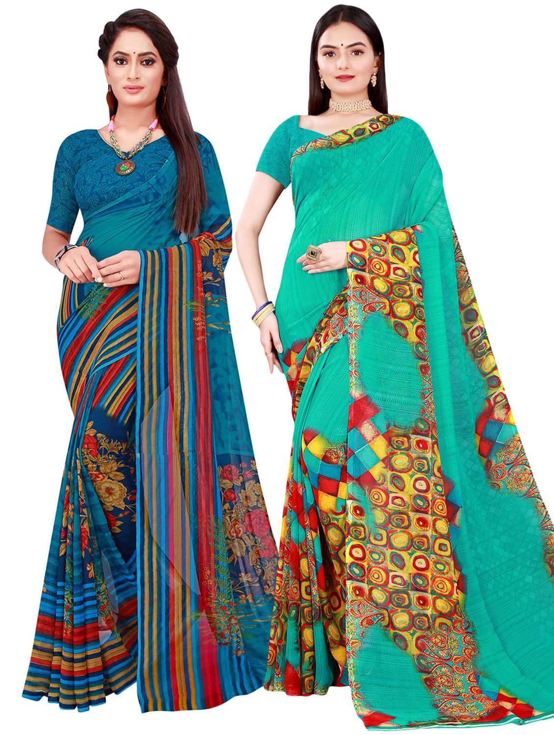 pack of 2 printed casual wear sarees with blouse - 21395970 - Very Small Image - 1