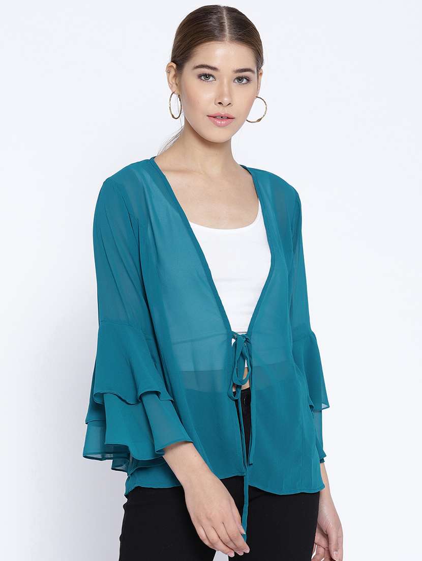 bell sleeved tie up detail shrug - 15788613 - Very Small Image - 1