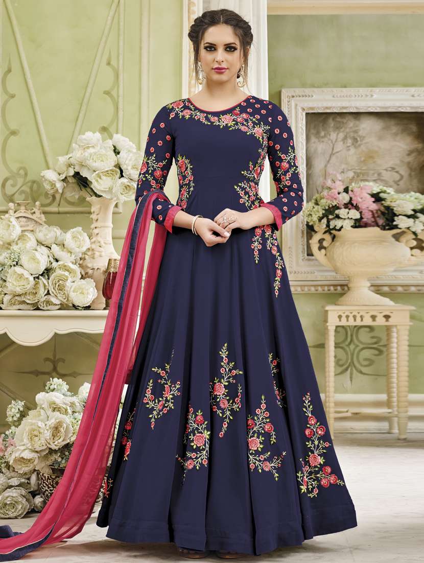 - » blue embroidered semi-stitched anarkali suit