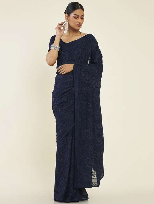 women's embroidered saree with blouse - 19496596 - Very Small Image - 1