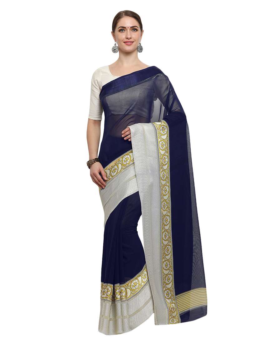- » blue georgette printed saree with blouse