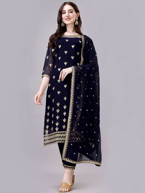- Find gorgeous sets of ethnic wears in trending designs in navy blue colors suitable for a number of occasions.