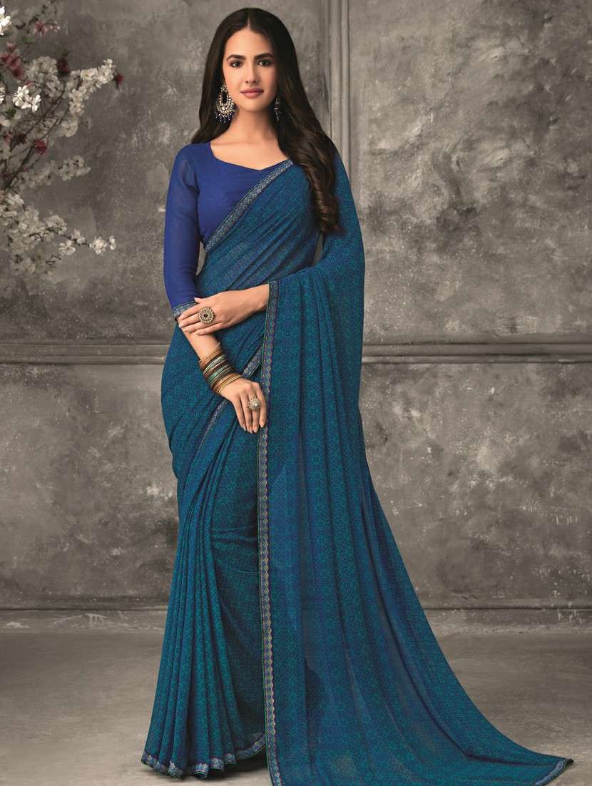 bordered printed saree with blouse
