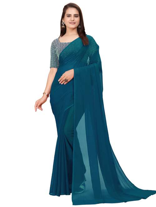 - » women's solid teal colored saree with blouse