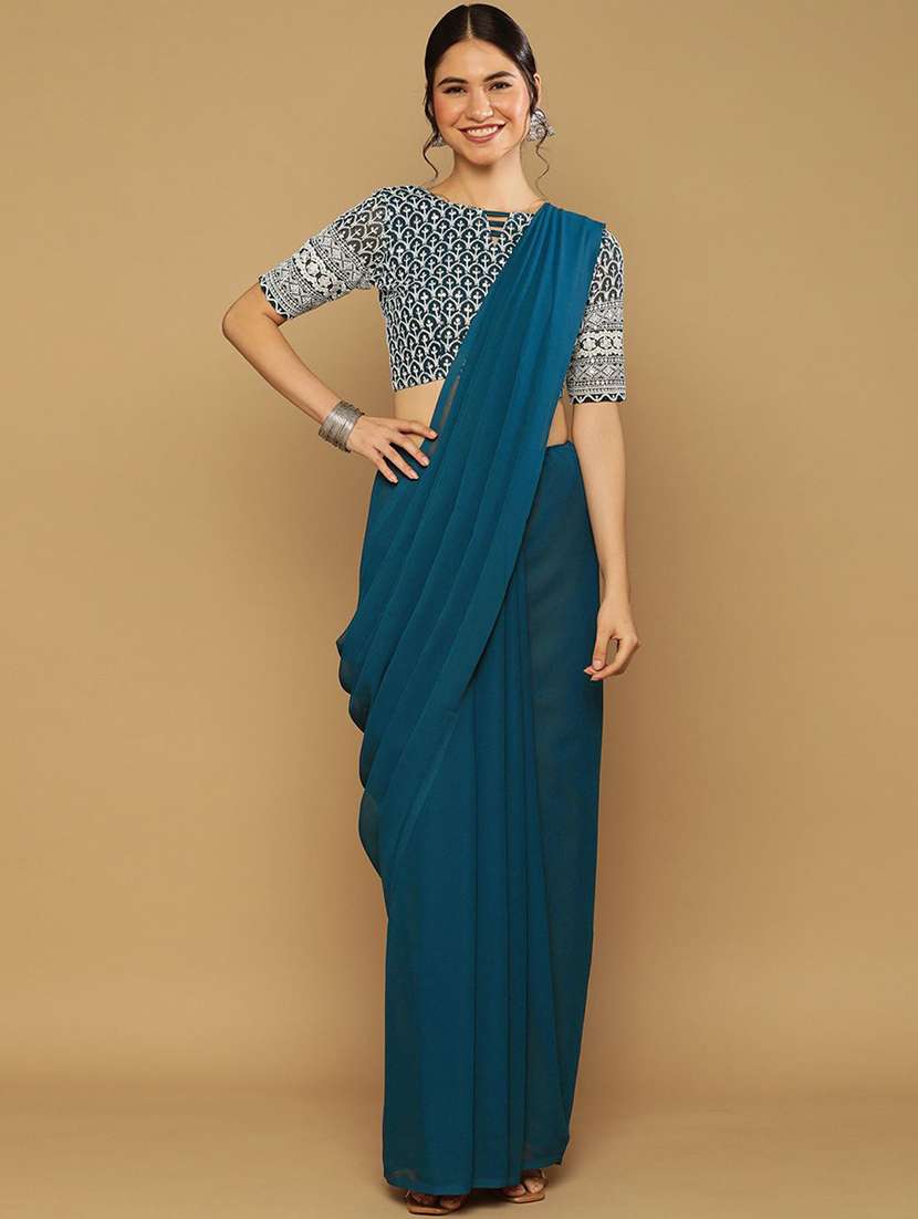 - » women blue plain georgette saree with blouse