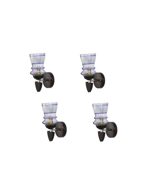 4 Designer Glass Lamp Shade, 4 Wooden Wall Fitting With 7 Watt LED, Wall Fixture & 8 Screw