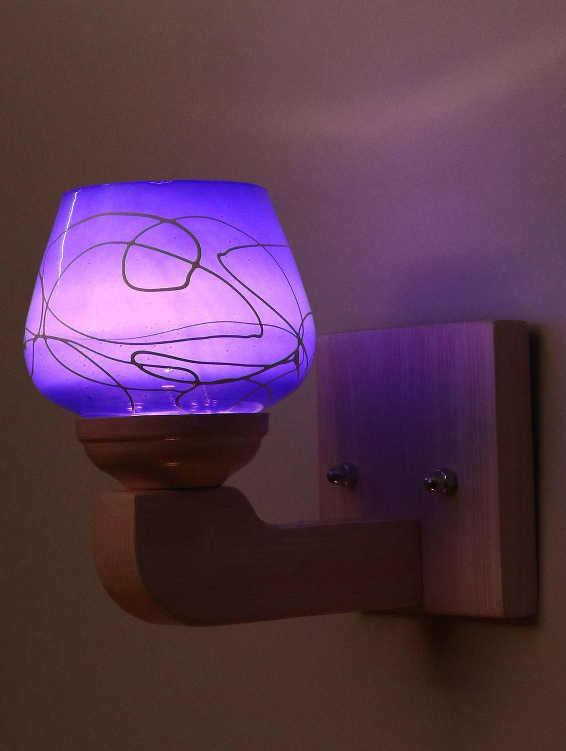 1 Decorated Glass Lamp Shade, 1 Wooden Wall Fitting With LED And Connecting Wire, Wall Fixture & 2 Screw