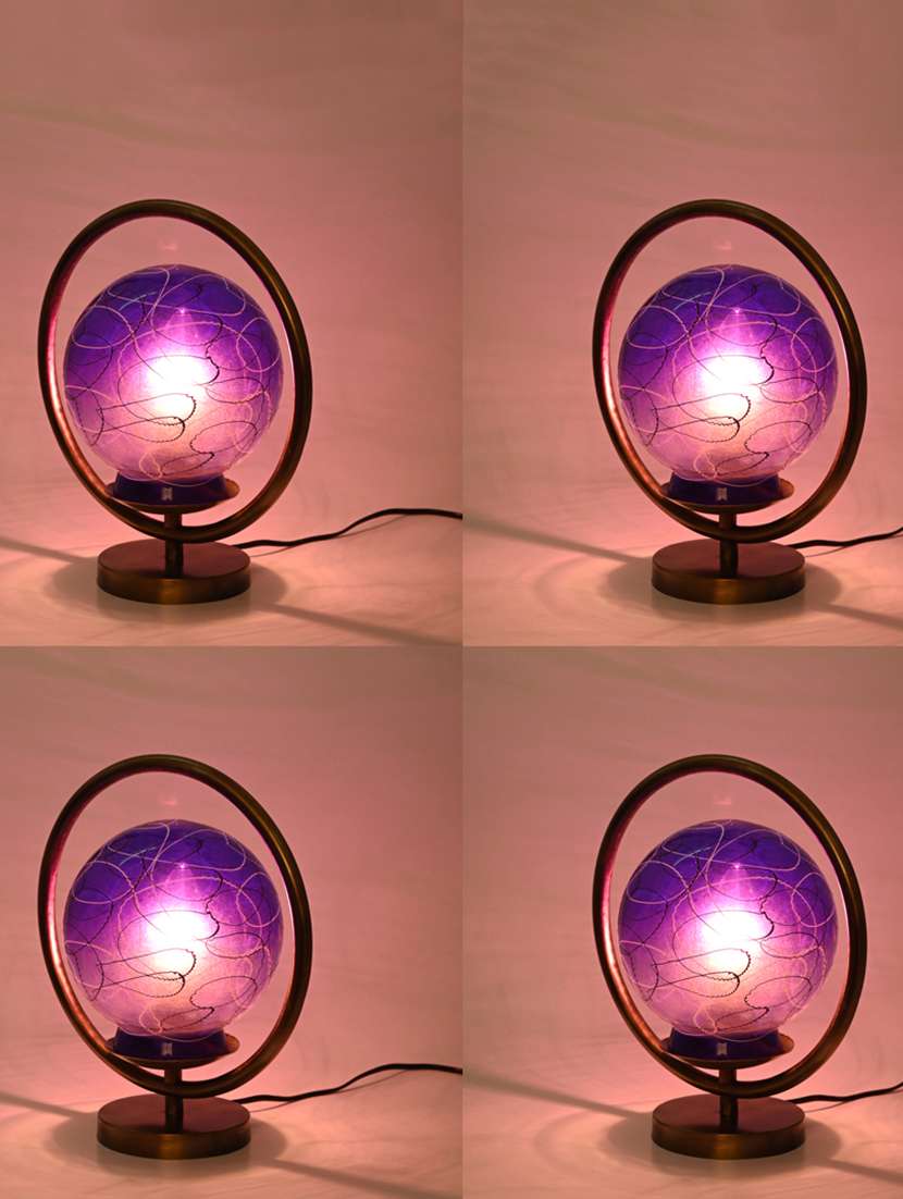 designer & decorative round table lamp with decorative colorful glass shade