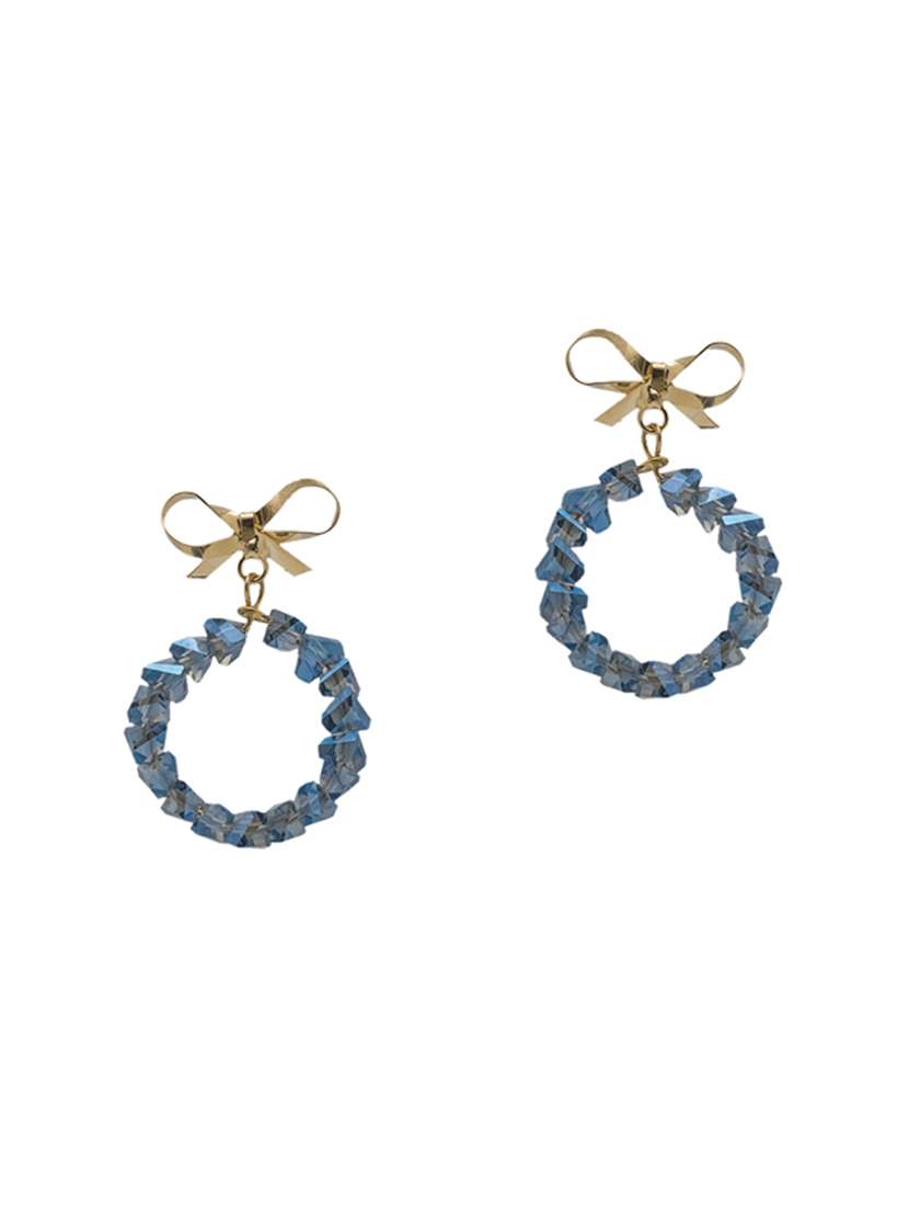 we introduce our lucen element crystal hoop earrings that will surely match up with your daily outfit or complete your party looks, so you can make a statement at work or party with styles that won't weigh you down. hoop dangling on the small piece of gold bow makes it look more pretty that you won’t ignore.
