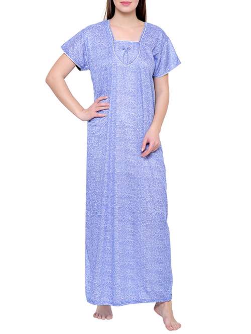 This attractive Women's Long-length Blue Nighty from Secret Wish consists high quality Hosiery fabric. Best Fits upto 30-36 inch (Chest).