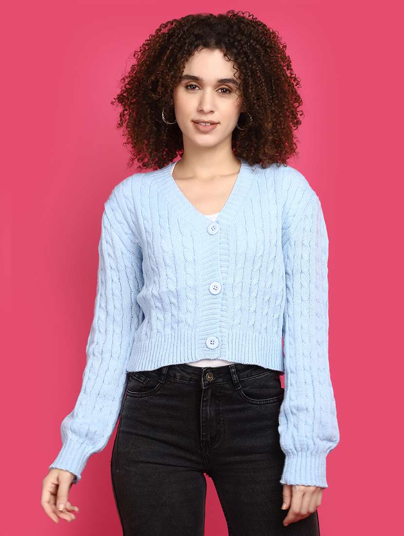 - » women light blue self design cardigans