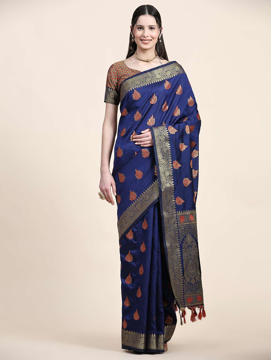 - » women's self design navy blue colored saree