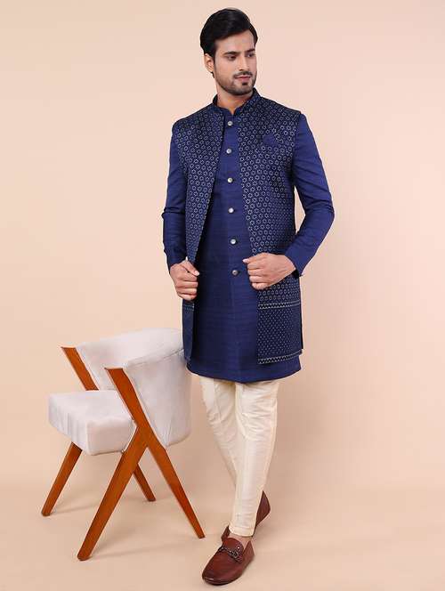 - » men mandarin neck self design sherwani set