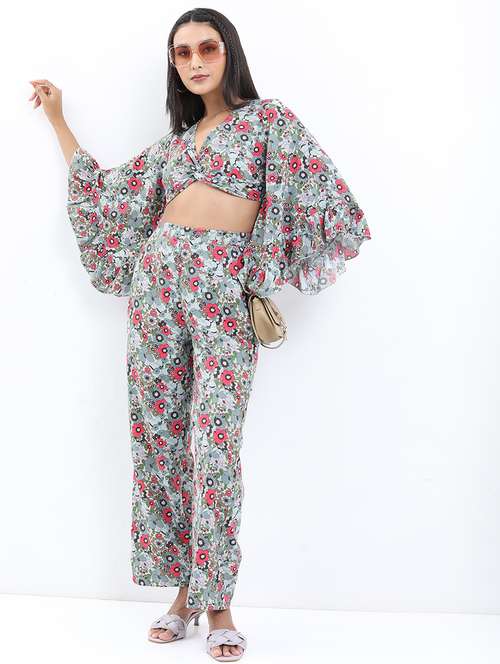 - » women blue polyester top and trouser co-ord set