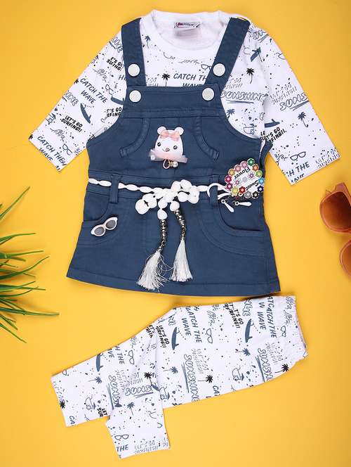 • Browse through the huge collection of casual wear twin sets and jump suits for girls in blue colors and designs to make your young lady look the fashionista that she is.