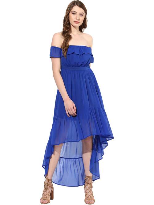 - » off shoulder gathered hem high low dress