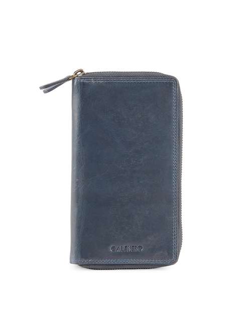 blue leather regular clutch