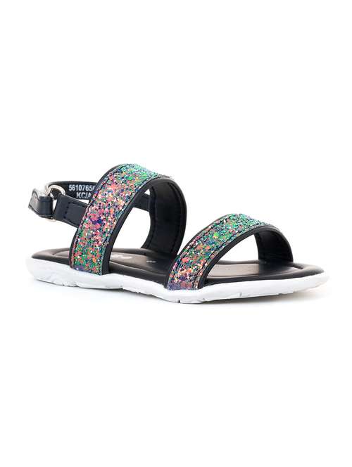 navy blue sequined back strap sandal