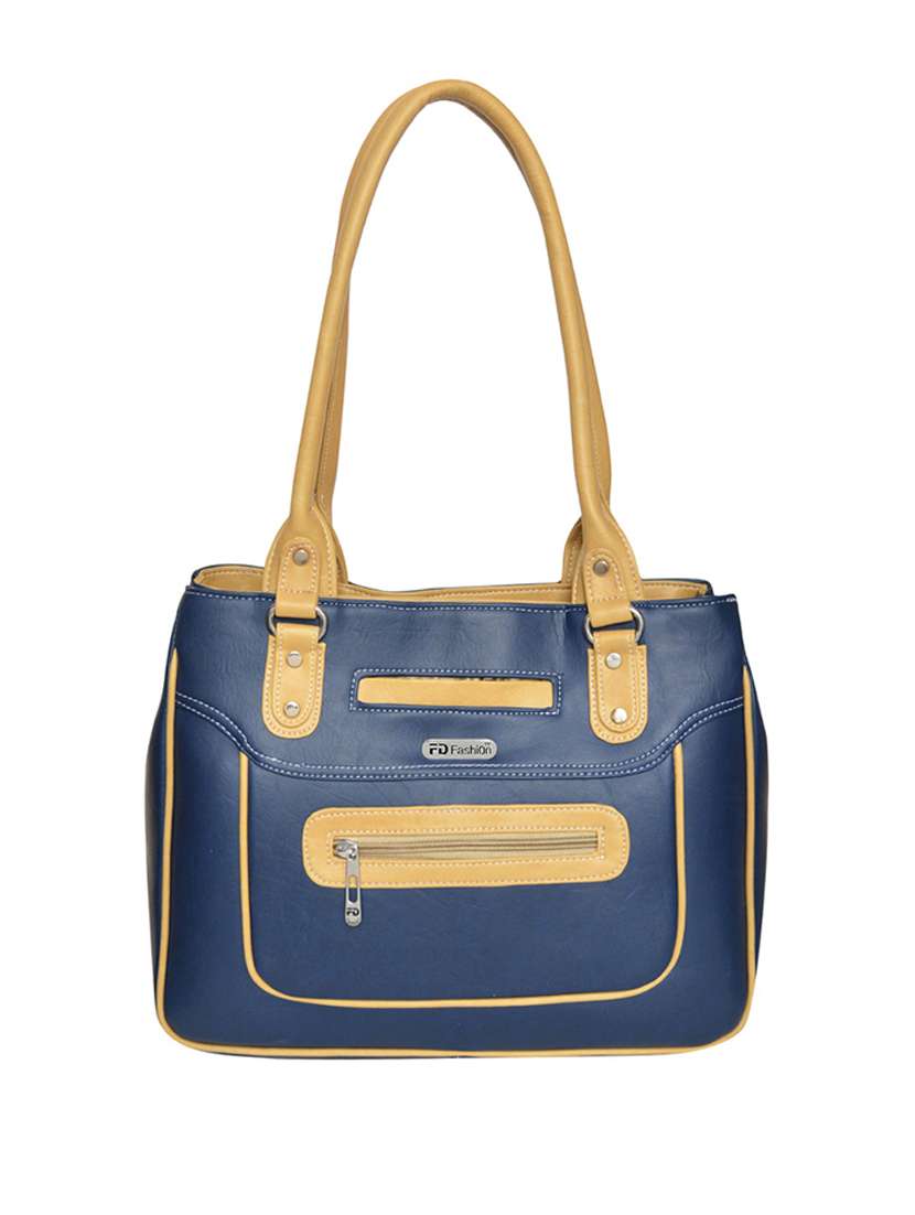 blue leatherette handbag