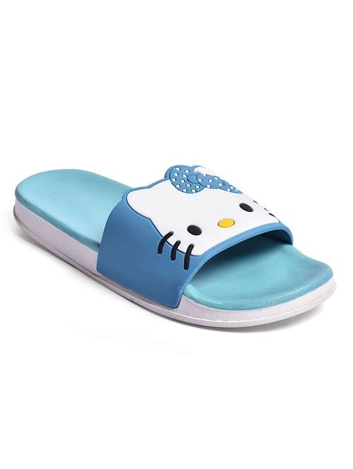 blue leatherette slides flip flops