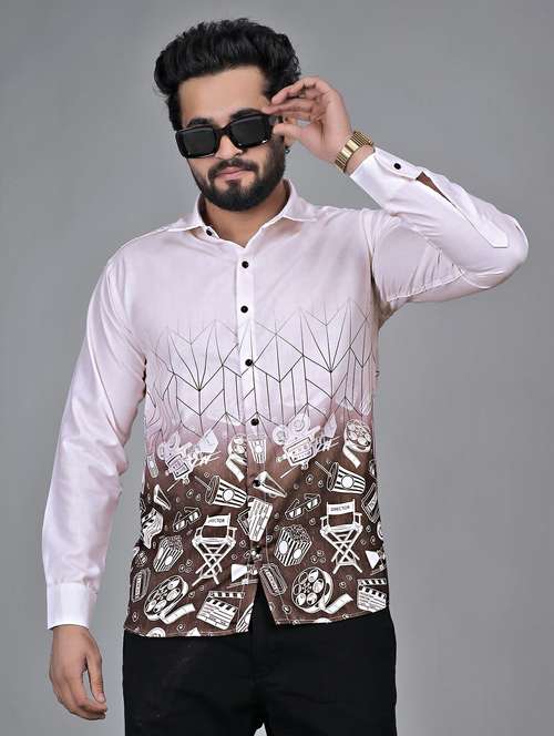 - » men printed long sleeve regular fit casual shirt