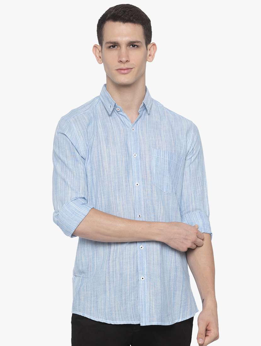 blue linen self design casual shirt - 16585388 - Very Small Image - 1