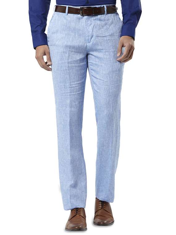 - » light blue linen textured flat front casual trouser