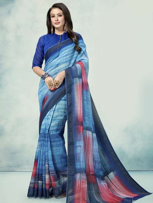 women's abstract blue colored saree