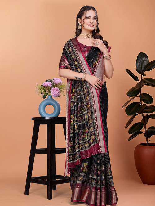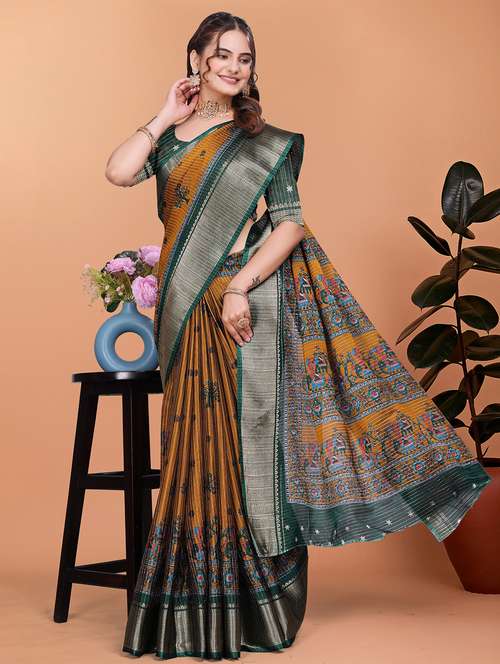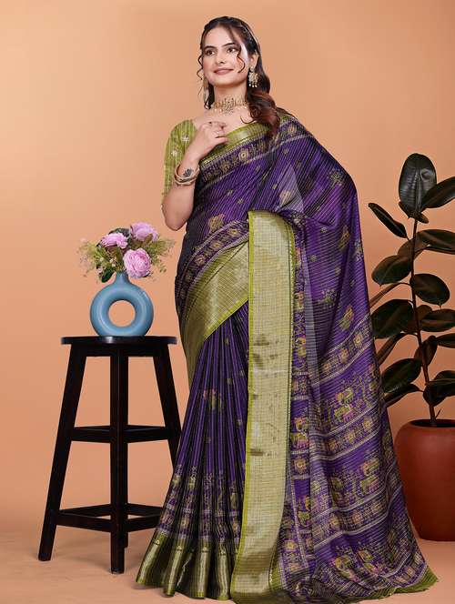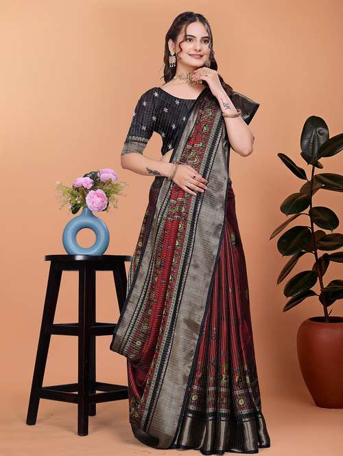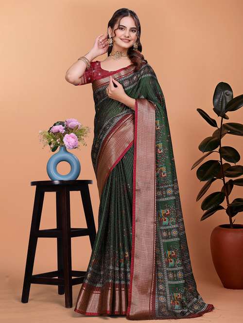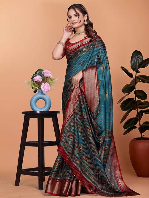 Blue SOFT LINEN COTTON SILK DESIGN WITH BEAUTIFUL WEAVING JAQUARD BORDER BLOUSE PIECE