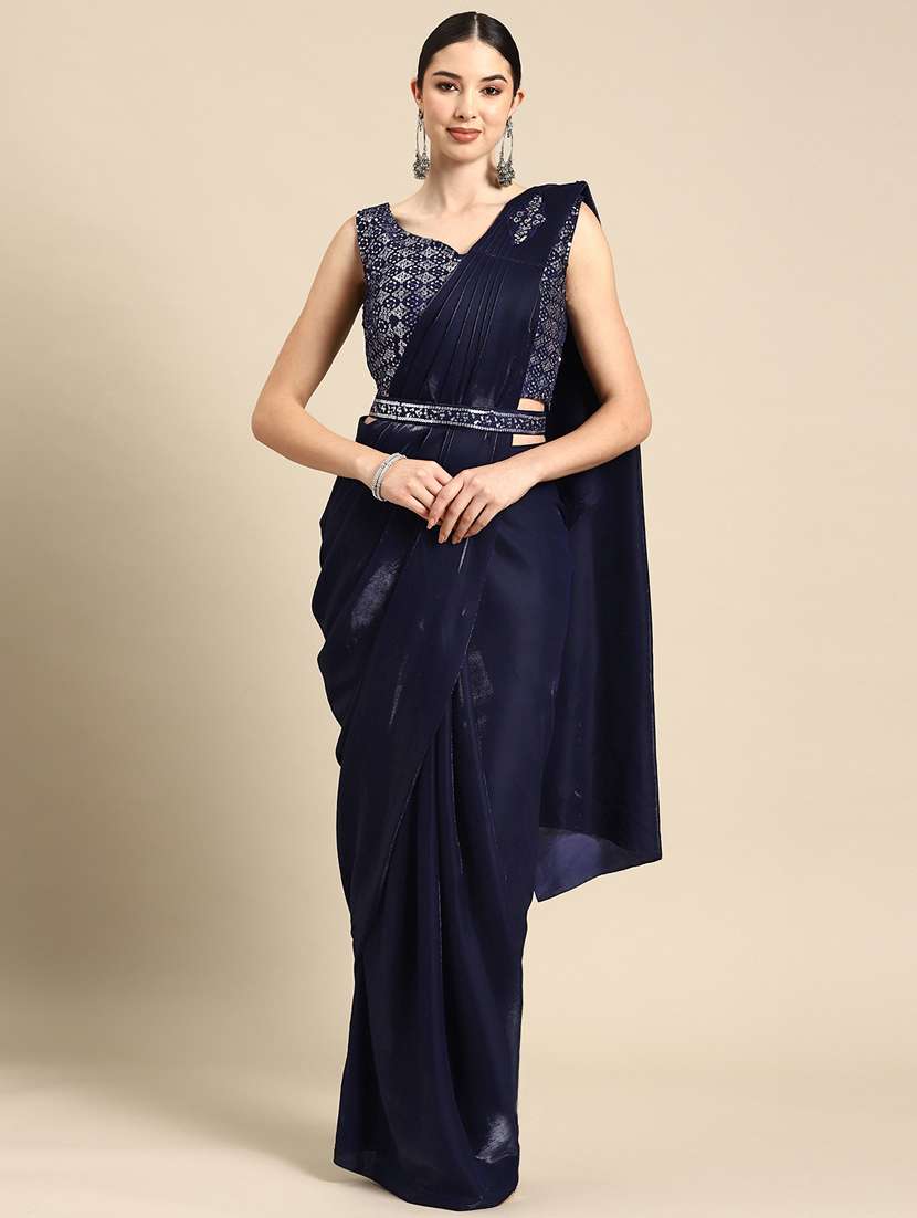 - » women blue solid ready to wear saree with blouse