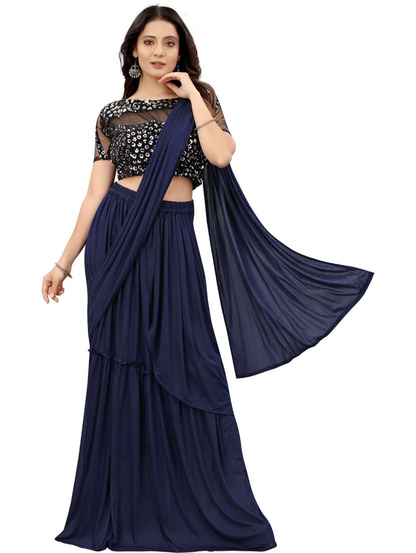 - » women's solid navy blue colored saree with blouse