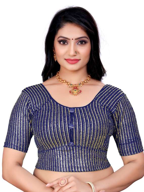 blue printed round neck stitched blouse - 19723517 - Very Small Image - 1