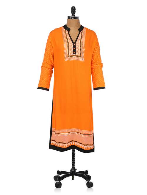 - » orange mandarin collar printed kurta