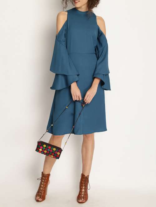 blue solid a-line dress
