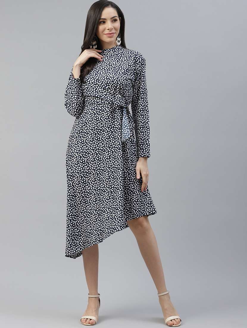 tie front printed a-line dress