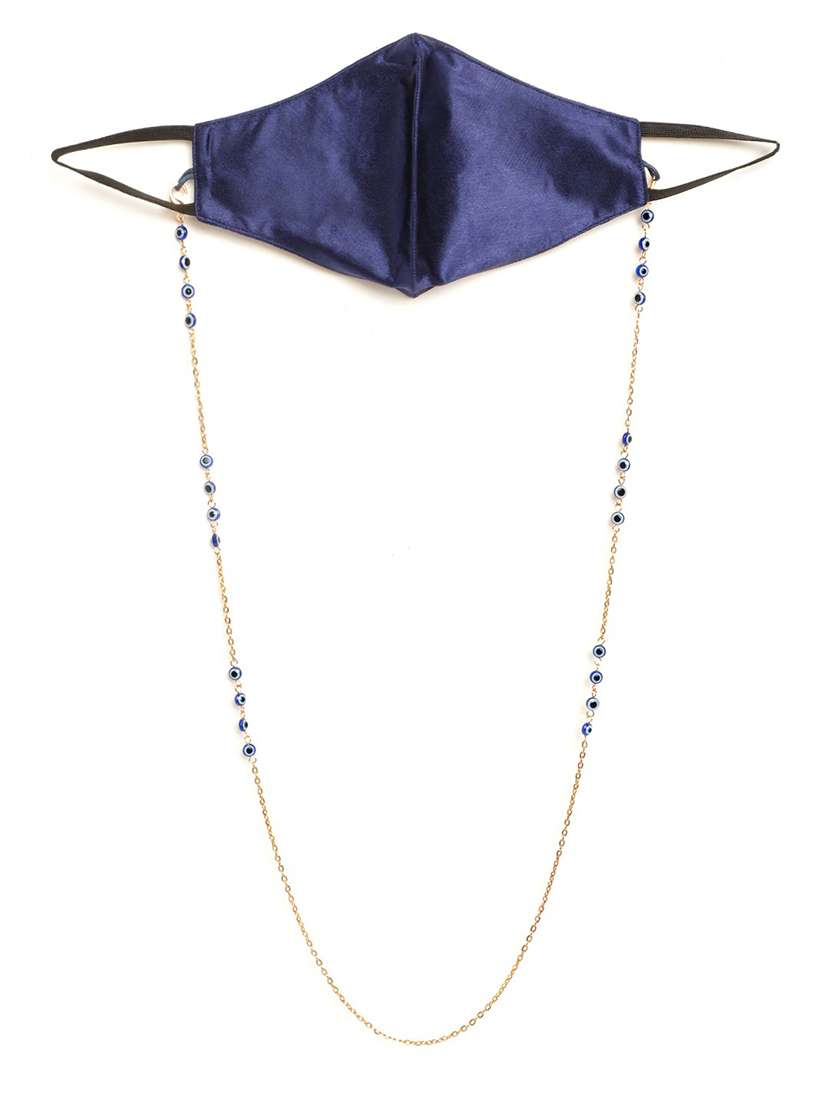 blue reusable face mask with gold plated beaded chain - 18585869 - Very Small Image - 1