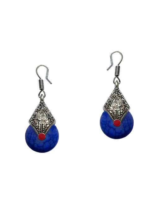 blue metal drop earrings