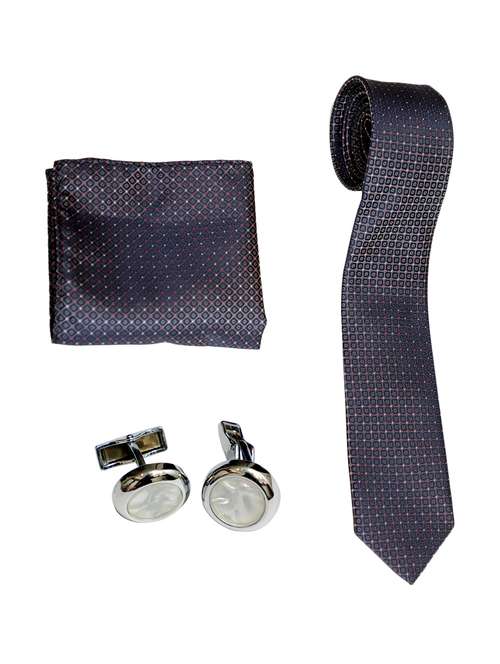 purple micro-fiber tie , pocket square and cuff links - 16209554 - Very Small Image - 1