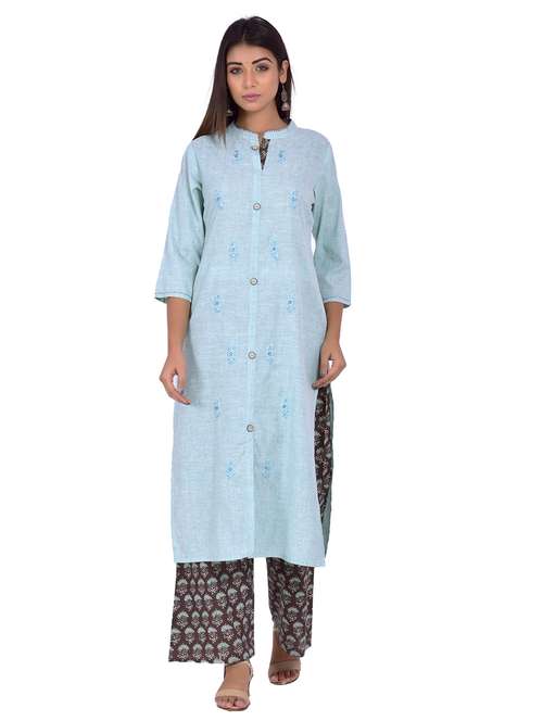 mandarin neck kurta palazzo set - 20078354 -  Standard Image - 0 mandarin neck kurta palazzo set - 20078354 -  Zoom Image - 0