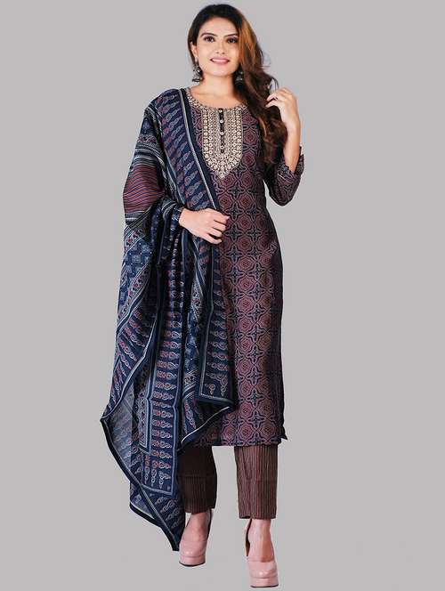 navy blue colored kurta pant set