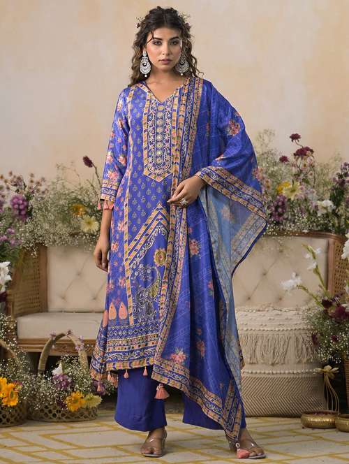 - » women printed three quarter sleeve kurta palazzo with dupatta set