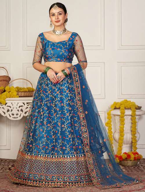 - Are you ready to adorn some alluring lehengas this season? Well, gear up to look gracious as LimeRoad brings to you the most magnificent collection of lehengas from WARTHY ENT and in blue colours.