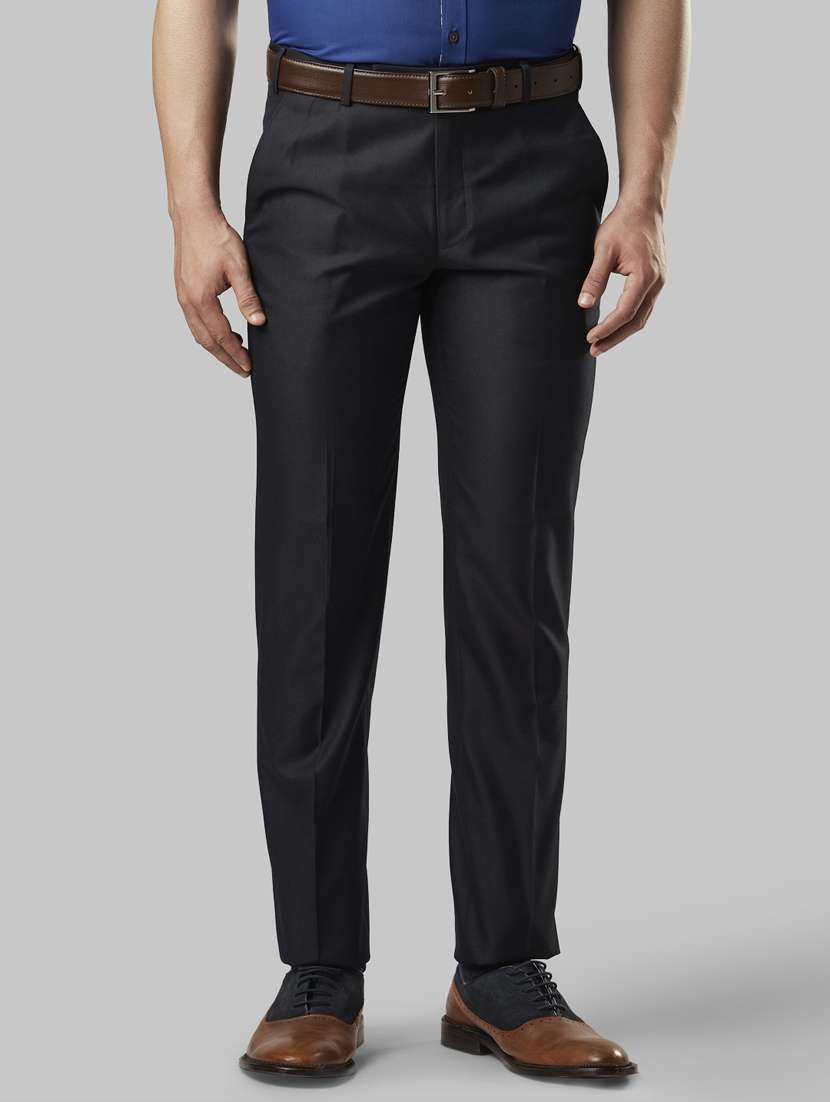 - » dark blue textured flat front formal trouser