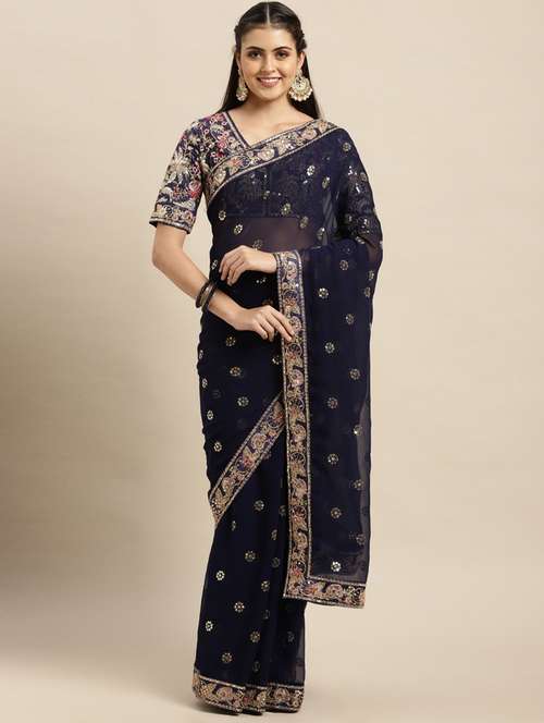 - » navy blue embroidered saree with blouse